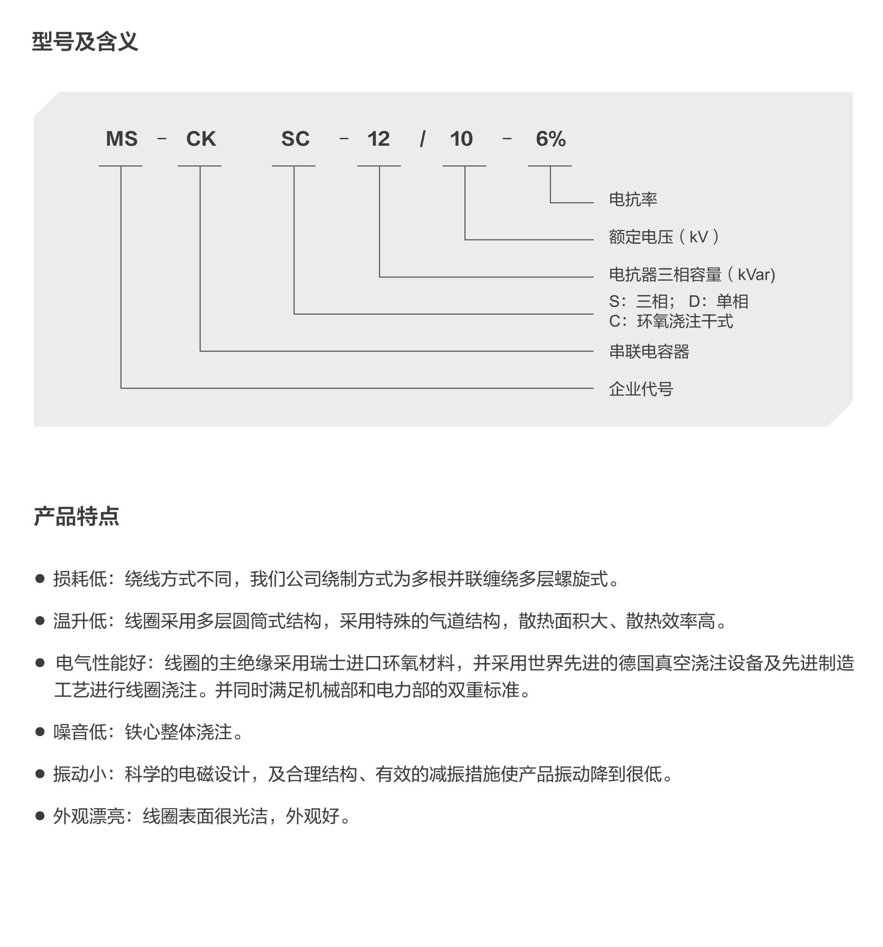 MS-CKSC 系列高壓串聯(lián)電抗器是無功補(bǔ)償裝置中的一個(gè)重要器件,它主要與電力電容器串聯(lián)使用,起降低裝置合閘涌流、抑制諧波放大的作用。電抗器主要有空心電抗器及鐵芯電抗器兩大類,鐵芯電抗器憑借其體積小、損耗低、對(duì)周圍環(huán)境輻射小、安裝方便的優(yōu)勢獲得了廣泛的應(yīng)用。